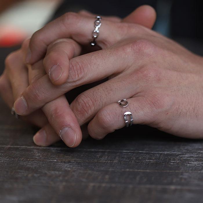 - メンズ > アクセサリー > シンパシーオブソウル リング シルバー ダブル ホースシュー 石付き Sympathy of Soul(シンパシーオブソウル) リング ダブルホースシュー