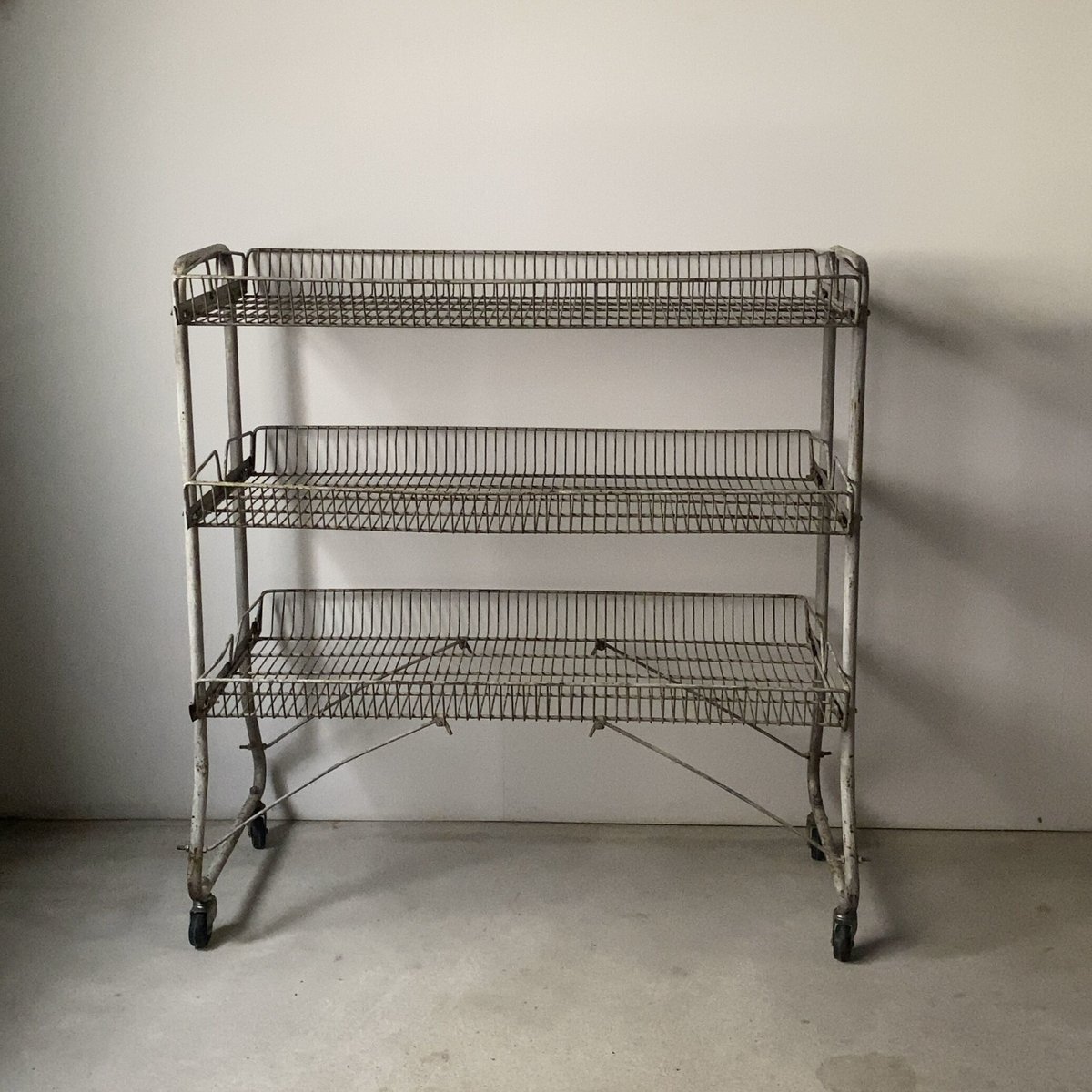 - キッチン収納 > キッチンワゴン > 80’s-90’s ヴィンテージ キャスターワゴン ラック インダストリアル ヴィンテージ スチール 3段 キャスターワゴン アイアンバスケット
