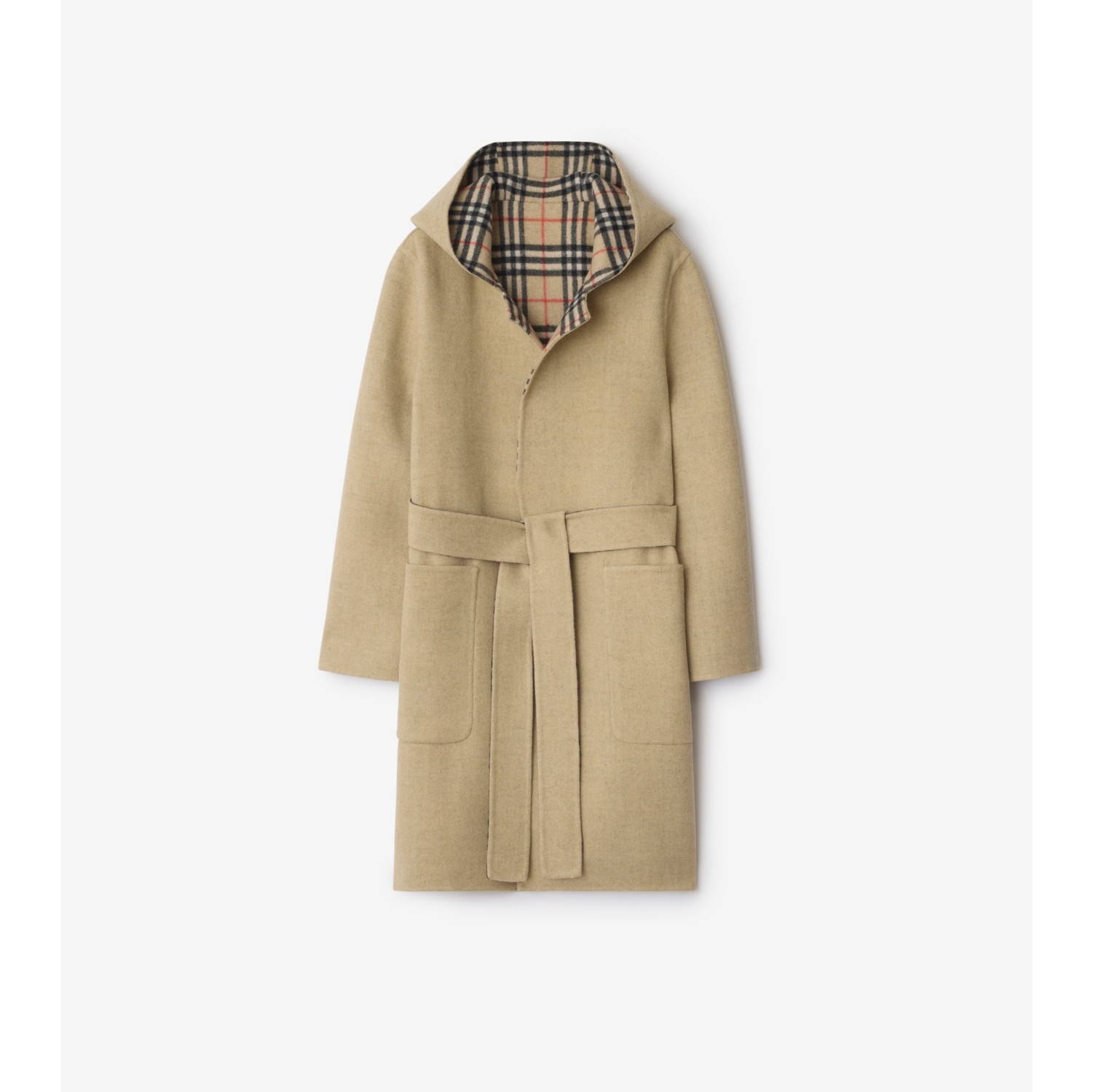 - レディース > ジャケット・アウター > 美品 バーバリー ウール フード付き ロゴ コート 大きいサイズ リバーシブル ウール フーデッド ラップコート (サンド) - ウィメンズ