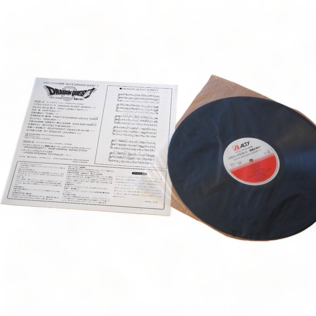 | 商品の特徴 | 希少】 ドラゴンクエスト ライヴ・コンサート レコード LP ドラクエ。ドラゴンクエスト ライブコンサート LPレコード。ドラゴンクエスト ライブコンサート LPレコード。1988年8月29日 NHK交響楽団のメンバーによる“ゆうぽうと(簡易保険ホール)”ライヴ版! 第2回ファミリー・クラシック・コンサートドラゴンクエストⅠ~Ⅲの名曲を大オーケストラの迫力あるライヴ演奏で収録!!約70分収録の超ロングプレイ盤です。ドラゴンクエスト イン・コンサート レコード LP。外装のビニールカバー、帯、解説書(譜面)、ステッカー特典付き【タイトル】ドラゴンクエスト ライヴ・コンサート【型番】AY25-25【作曲】すぎやまこういち【演奏】ファミリー・クラシック・オーケストラ【収録時間】約70分【付属品】全収録曲の譜面、ドラゴンクエストI〜IIIロゴステッカー◆状態・盤面は両面とも傷はありません。Saber tiger (HIDE在籍バンド)とCASBAH ソノシート。ただし経年による汚れがあります。創価学会 体験談レコード ソノシート69枚。・ジャケット裏面に少し凹みがあり、見本品のシールあり・譜面に汚れと上部に少し破れあり・長期自宅保管品のため、ややカビ臭さがあります。未使用7inch 2枚セット Tomato Boys 和モノ。できるだけわかるように写真を撮ってありますが中古品であることをご理解の上ご購入ください。レコード ゲーム レトロ。A面序曲「ドラゴンクエスト・マーチ」 Overture \"Dragon Quest March\" ラダトーム城 Chteau Ladutorm王城 Chteau街の人々 People遥かなる旅路~広野を行く~果てしなき世界 Endless Worldレクイエム Requiem戦い~死を賭して Deathfight-Dead or Aliveこの道 わが旅 My Road, My Journeyフィナーレ FinaleB面ロトのテーマ Roto王宮のロンド Rondo世界をまわる(街~ジパング~ピラミッド~村) Around The World冒険の旅 Adventureダンジョン~塔~幽霊船 Dungeon~Tower~The Phantom Ship鎮魂歌~ほこら Requiem~Small Shrine海を越えて Sail on The Seaおおぞらをとぶ Flying in The Sky戦闘のテーマ~アレフガルドにて~勇者の挑戦 Fighting Spiritsそして伝説へ…Into The Legend#DQ1 #DQ2 #DQ3 #イン・コンサート #インコンサート | ||