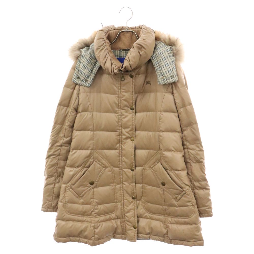 バーバリーブルーレーベル ダウン ロゴボタン ノバチェック ファー M 茶系 BURBERRY BLUE LABEL (バーバリーブルーレーベル) ダウンジャケット