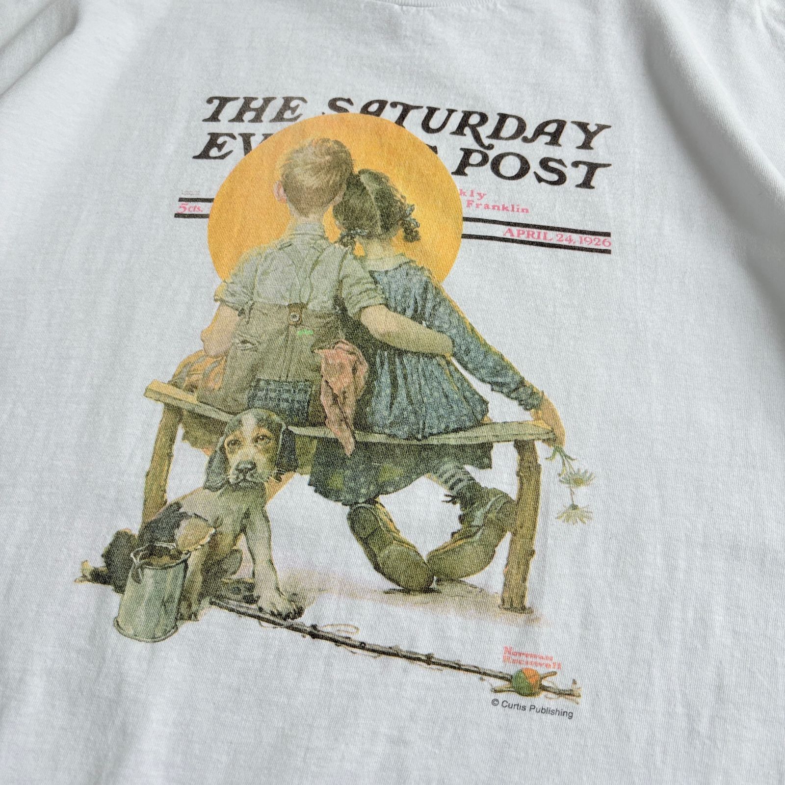 - メンズ > トップス > バ*カ様 90s ノーマンロックウェル vintageアートtシャツ 90s Norman Rockwell Boy and Girl gazing at the Moon Printed T