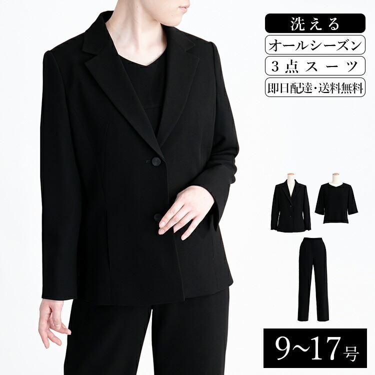 新品未使用 アンタイトル パンツスーツ 洗える セットアップ ブラック 黒 L 送料無料/再入荷】 洗えるブラックフォーマル3点スーツ 通年 黒 9-17号