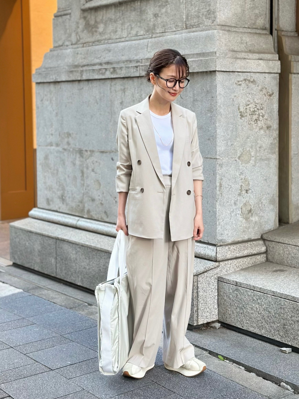 - レディース > スーツ・フォーマル・ドレス > 【値下げ】PLST プラステ リネンブレンドダブルジャケット ワイドパンツ L 2024年モデル【丈長め】ワイドパンツ(リネンブレンド)、リネン