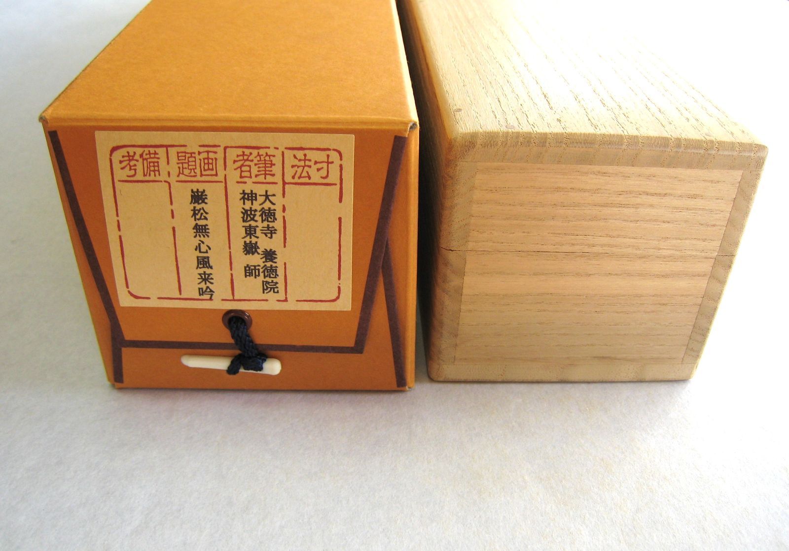 | 商品の特徴 | 真筆】茶掛一期一会◇大徳寺派 宝林寺 前大徳 福本積應共箱・タトウ箱付。真筆】茶掛一期一会◇大徳寺派 宝林寺 前大徳 福本積應共箱・タトウ箱付。茶掛け 茶掛 一期一会 紫野大徳寺 黄梅院住職 小林太玄 (真筆・新品。■画 題■「茶掛 一期一会」大徳寺派 宝林寺 住職 前大徳 福本積應■寸 法■ (約)幅 60cm× 丈 113cm・軸先寸■略 歴■ 福本積應(ふくもと せきおう)昭和5年 京都に生まれる。昭和34年 大徳寺派 招春寺(京都府船井郡)住職を拝命。昭和58年 大徳寺派 宝林寺(亀岡市)兼務住職を拝命。平成元年 宝林寺本堂・庫裏・山門を建立。平成14年 招春寺本堂・山門を建立。平成16年 宝林寺を後任住職に譲。再度、招春寺住職を拝命。本紙・表装とも目立ったキズよごれなし。美品です。共箱にアクがでています。こちらの茶掛 一期一会は、大徳寺派 宝林寺 住職 前大徳 福本積應 老師の直筆横ものでございます。軸先:黒漆塗。 紙本:墨書。 箱書、花押があります。 共箱、タトウ箱付です。~一期一会とはどんな意味?~一期一会(いちごいちえ)という言葉は、「山上宗二記」に萌芽がみられ、井伊直弼が力説した言葉ですが、もっと古くに成立していた言葉であろうと思われます。一期(いちご)は一生、一会(いちえ)は唯一の出会いという意味です。一期一会とは「一生でたった一度の出会い」という意味です。茶席で、たとえ幾度同じ人が会するとしても、今日の茶会はただ一度限りの茶会であると、主客ともに全身全霊を傾けて取り組む心を示します。。真筆】茶掛け 茶掛 瀧◇大徳寺派 宗鏡禅寺 前大徳 雪尾要道 共箱。掛軸 大徳寺 戸上明道筆 春洋画 瓢箪の図 共箱 V 5692A。美品 掛け軸 佐藤朴堂作「喫茶去」福聚院 共箱 禅語 茶掛け 年中掛け。【梶浦由記/Yuki Kajiura】南里侑香FJY 直筆ミニサイン。souyu 藤井誠堂筆【丹頂千年寿】自筆 横物 懐紙 前大徳寺 住職。訳あり品 篆刻 印材 印石 まとめ 書道 落款 遊印 ヒビ 使用済みなどなど。美品 掛け軸 弧峰不白筆「千家七事式」解説付き 川上不白 江戸千家流の流祖。掛軸 弘法大師(空海)「無」国宝 一字復刻 工芸品 砂原秀遍箱書。【紅絲硯】◆紅黄糸紋の美石◆吉祥文天成楕硯◆魯硯(山東省)◆布化粧箱◆紅糸硯。【 荻生徂徠の書 】 杜牧・高適詩。美品 掛け軸 立花大亀作「松風傳古今」大徳寺 共箱 禅語 茶掛け 年中掛け。美品 掛け軸 法谷文雅作「笑門福来」大徳寺 共箱 禅語 茶掛け 縁起物。書道 大型印泥 32両。【歙州硯 雷廻文彫琢】◆魚子紋・静波紋の蒼黒美石◆唐木塗箱◆七吋位◆歙硯◆龍尾山。掛け軸 11本。大型版 長谷川等伯筆『仏涅槃図』軸装仏表装仕立 日蓮宗 本法寺 日蓮。古文書 中国拓本「楷書東方朔画賛碑」顏真卿書 清中期拓本 書道名碑 印刷物ない。田中 野夫専用 水墨肉筆 錦鶏花葉太湖石図 南田沈銓 掛軸 中国美術(Y-12)。「キングダム」作者 原泰久先生 直筆サイン | ||