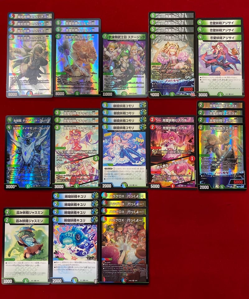 | 商品の特徴 | デュエルマスターズ トリーヴァスノーフェアリー デッキ デュエル。デュエマ CS優勝 トリーヴァスノーフェアリー デッキ デュエマ CS優勝。デュエルマスターズ トリーヴァスノーフェアリー ゴルギーオージャー。入手後スリーブに入れてるので美品ですが神経質な方は御遠慮ください。デュエマ デッキ トリーヴァスノーフェアリー デッキパーツ付 トリー。配達保証が付くメルカリ便にて折れ、防水対策をして発送致します。デュエルマスターズ ペテンシー 3枚。他に分からないことや、他に出品してる商品とまとめ買いしてくれる方は送料分以上に値引き致しますので質問からよろしくお願いします!種別...複数カード | ||