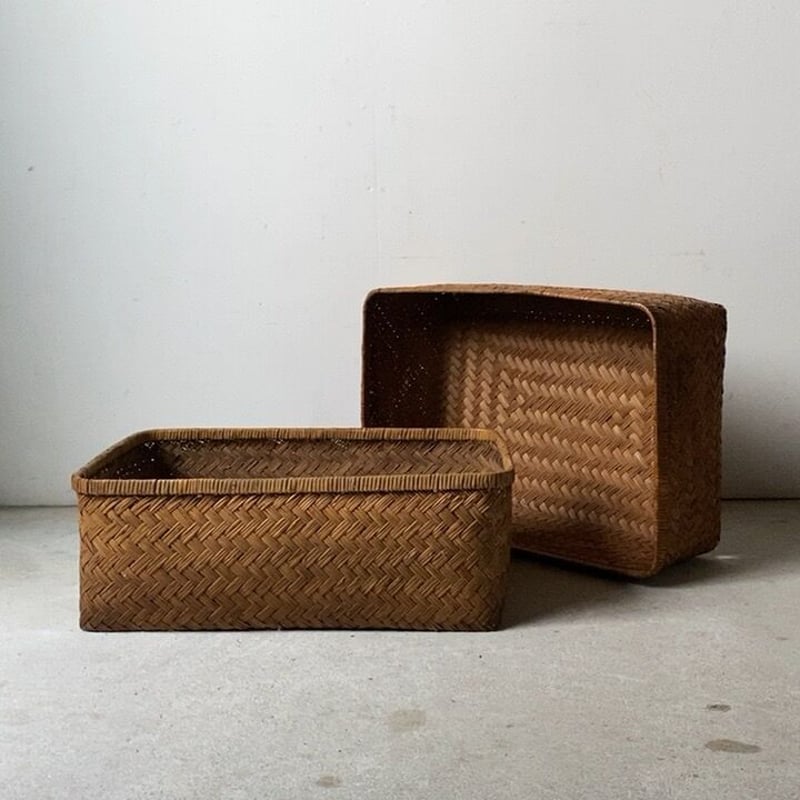 | 商品の特徴 | 行李(こうり)セット 網代編み かご収納 古道具 古民家 レトロ。行李(こうり)セット 網代編み かご収納 古道具 古民家 レトロ。行李(こうり)セット 網代編み かご収納 古道具 古民家 レトロ。行李の大小6個セットとなります。籐 バスケット カゴ ニューヨークで購入 フルーツバスケット ランチバスケット。木製家具バスケットかごかご収納竹編み竹細工民芸昭和レトロ昭和レトロ古道具古家具アンティークヴィンテージビンテージオールドアジアンエスニッククラシックテイスト···アジアン・エスニック・モロッコ風,アンティーク・クラシック,シンプル・ベーシック,ナチュラル,レトロ・ミッドセンチュリー,和モダン,和風主な素材···籐・ラタンテイスト···アンティーク・クラシック,和モダン,和風。古い竹編みの行李 63cm 竹行李 柳行李 スズ竹 網代編み ヴィンテージ。大きいものは使用感がありますが、小さいものは綺麗でまだまだご使用いただけます。◆サイズ(たるみもあるので、内かごの縁の部分で計測してます)① 横幅 約57cm 奥行 約36cm 高さ 約21.5cm② 横幅 約66.5cm 奥行 約39cm 高さ 約24cm③ 横幅 約21.5cm 奥行 約13.5cm 高さ 約6.5cm④⑤⑥ 横幅 約10cm 奥行 約7cm 高さ 約5.5cm ※多少の誤差はご容赦下さいませ◆発送についてご購入いただいた際には、5枚目の写真のように、1つの行李に全て入れて、プチプチにて丁寧に梱包して発送いたします。真竹の洗濯籠 中 井上湧 | ||