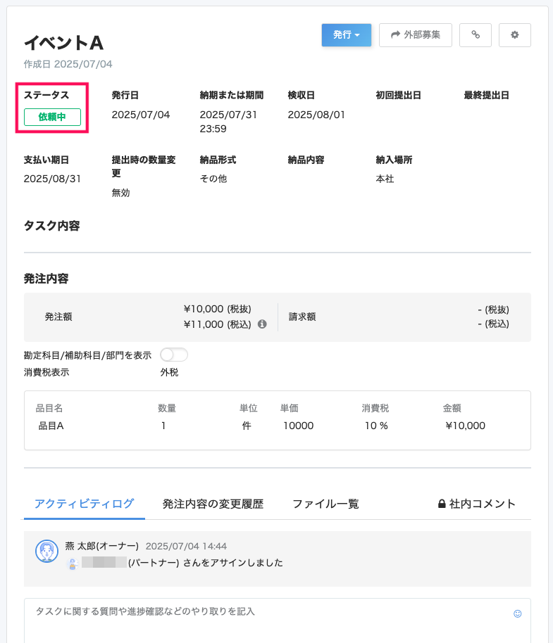 | メーカー | ペル様ご確認様ページ 企業ユーザー】タスクを依頼・検収する |