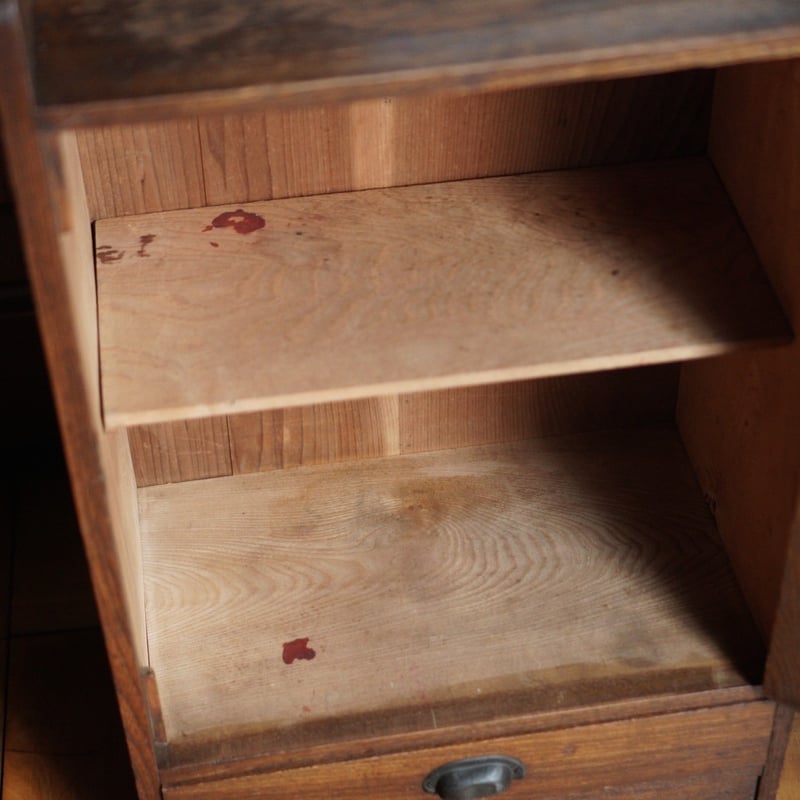 - 美術品・アンティーク・コレクション > 家具 > 木製 引き出し収納家具 引き出し アンティーク レトロ 古道具 ガラス棚 引出し付き 収納棚 収納 木製 昭和初期 古道具 アンティーク